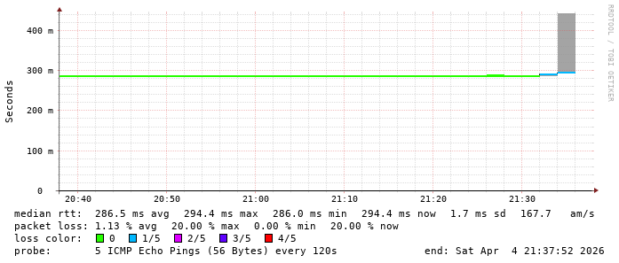 4. Max Roundtrip Time 0.294000 seconds